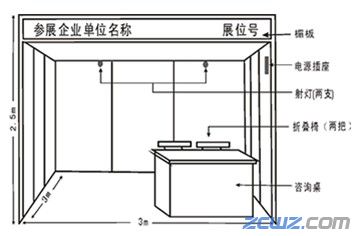 一张信息桌,二把折椅,一块中英文楣板,二个射灯,