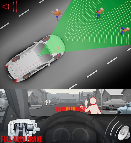 PDFAB行人侦测及完全主动剎车系统能辨识身高超过80公分的人体轮廓,在必要时警告驾驶、同时预先加压剎车。若驾驶人没有反应,且碰撞即将发生,系统就会自动全力剎车,在时速35km/h以下,系统可让车辆完全停下;