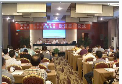 《全面合作协议》签约仪式于2011年9月7日下午在丽水香溢紫荆花大酒店隆重举行。工行方面出席签约仪式的有工行丽水营业部汤华勇、陈波等领导以及10余位客户经理;浙江浙侨担保有限公司董事长陈小林、章峰经理莅临会场;吴敏江会长和在家的各位副会长、理事全部出席会议,绝大多数会员企业的老总出席了会议。工行营业部汤华勇总经理、浙侨担保公司陈小林董事长、轴承协会吴敏江会长代表各自单位致辞。